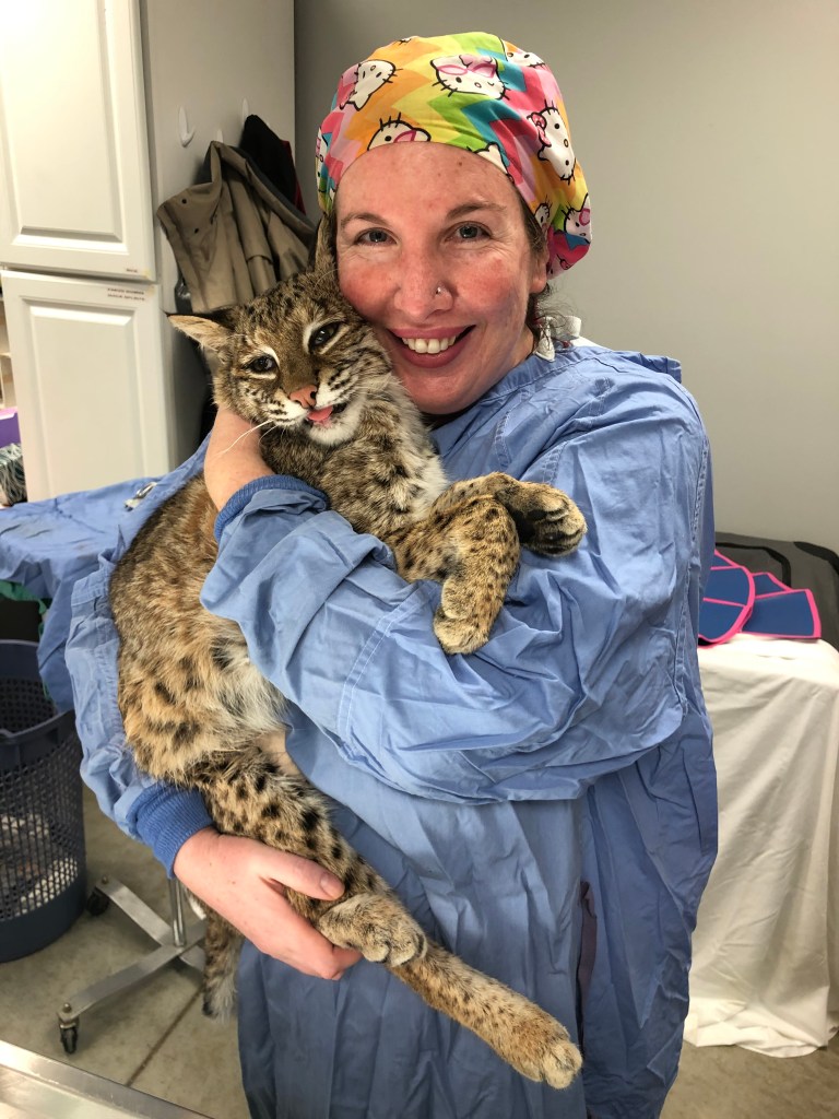 I received a call on January 29th from Sabrina S, a friend and fellow wildlife rehabber about an injured bobcat. I was scheduled to work the next day at Animal Care Alliance in Richmond Indiana, so I messaged the director (Joyce Luckett) to see if it was okay for me to see and treat the bobcat there. I was not in the least bit surprised when she said, “Sure! Bring her in!” Joyce is also a wildlife rehabber with a huge, huge heart:)