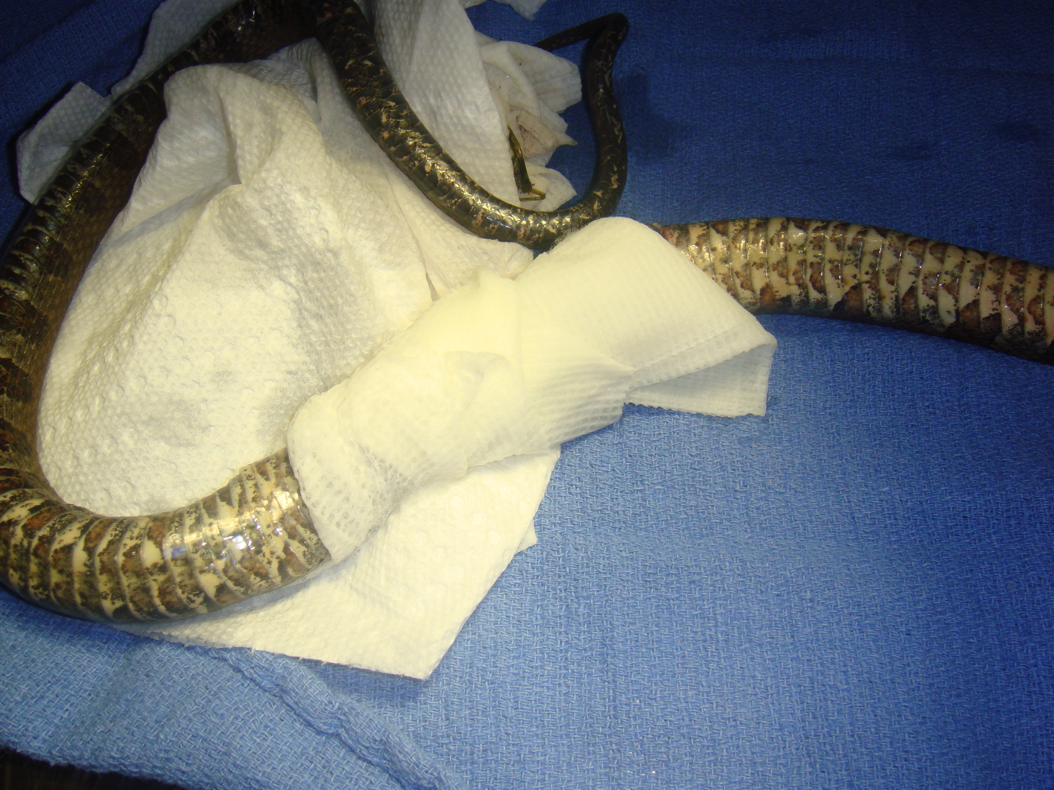 I have performed CPR on LOTS of critters, but never a snake. The big question: “Where is it’s heart!?” No other animal has the body of a tube. I decided it was probably somewhere in the upper one third, so that is where I began my tiny compressions. Now the next big question: how do you breathe for a snake?