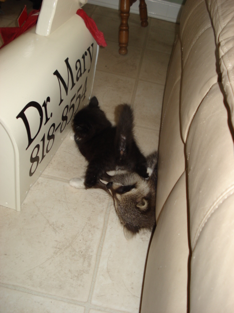 I now had two babies once again. I introduced Cuddles to Raccoon Roxie, and it was love at first sight:)