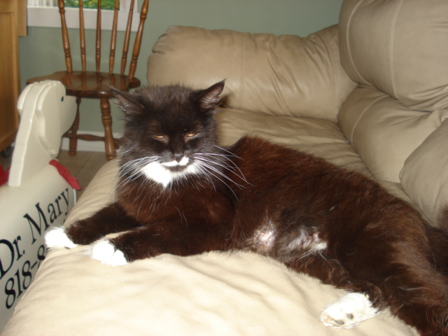 Brian L. held her for nearly the entire time they were here and she seemed as taken with him as he was with her. I spayed Miss Cuddles and we got her up to date on all her vaccines, so that she could take a ride with one of our employees to Brian down in Bloomington. She seems to be doing VERY well in her new home…….
