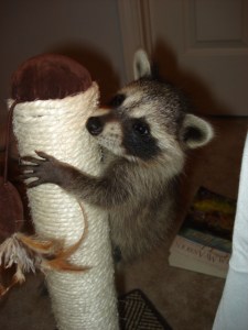 My husband and I were scheduled for an annual summer vacation to Michigan, which posed a serious problem of what to do with Sheila. It is not your average person who is willing to pet-sit your baby raccoon. Thankfully, we have some pretty awesome friends – Dr. Jim Rasp (the best chiropractor ever) and his family took in Sheila for the entire week. I’m pretty sure they had no idea what they were getting themselves into or they probably would have said no!