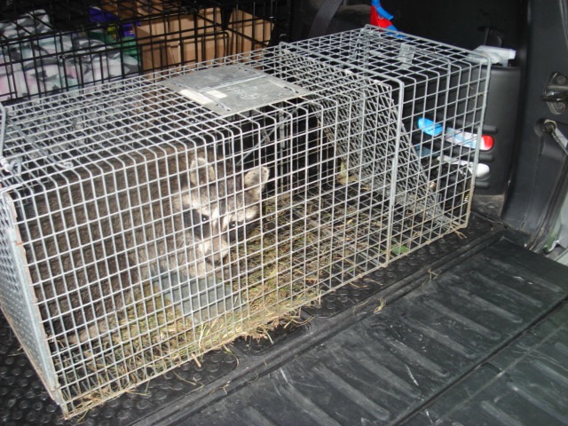 I had a brilliant idea of placing them inside a dog house with the trap right at the entrance. This way she would climb in to get the babies, the trap would close and I could move the entire family elsewhere.