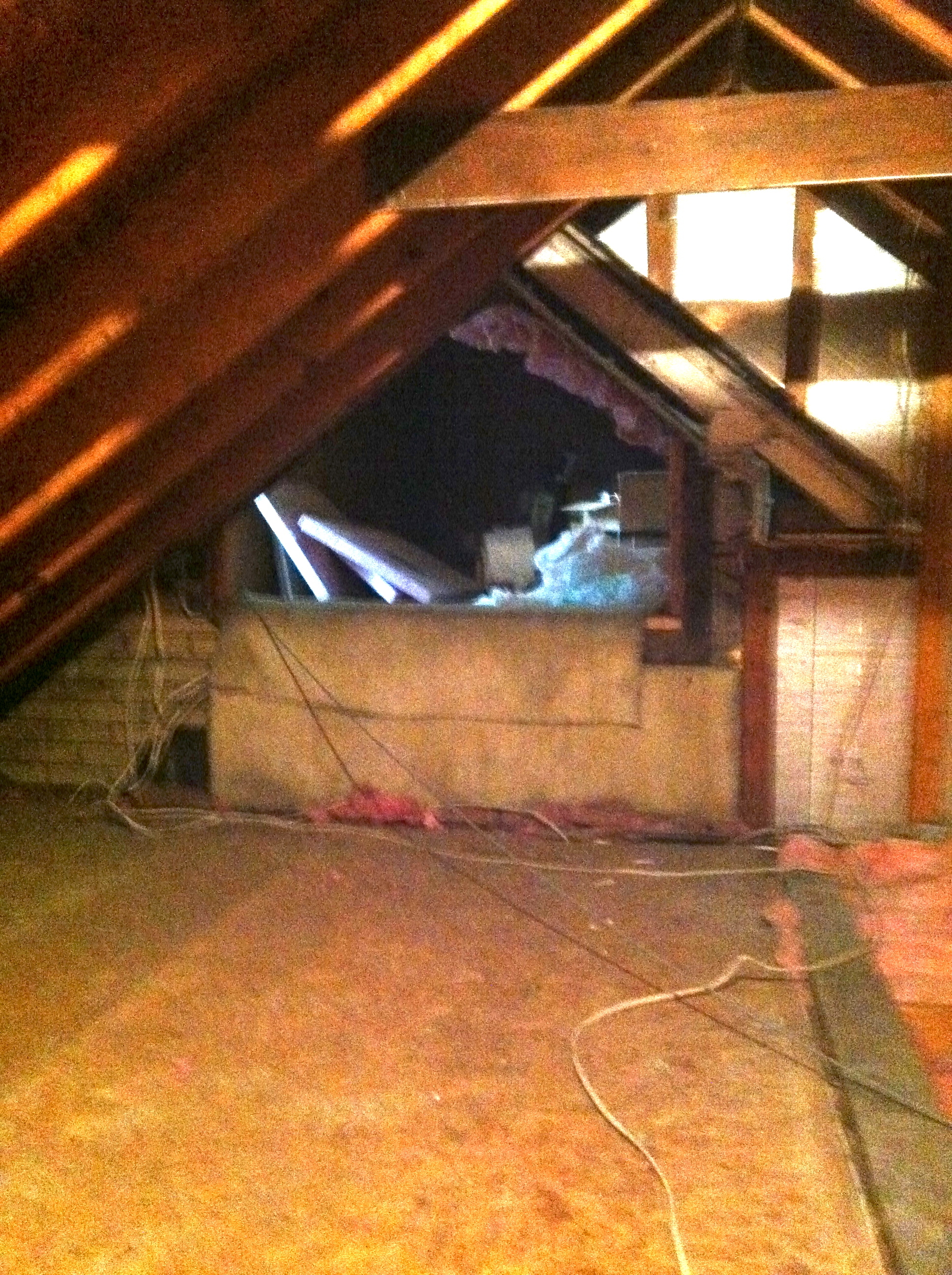I honestly don’t know what led me to do it – I think it was mostly curiosity, but perhaps intuition is a better adjective. I decided to inspect the damage myself from inside the attic.