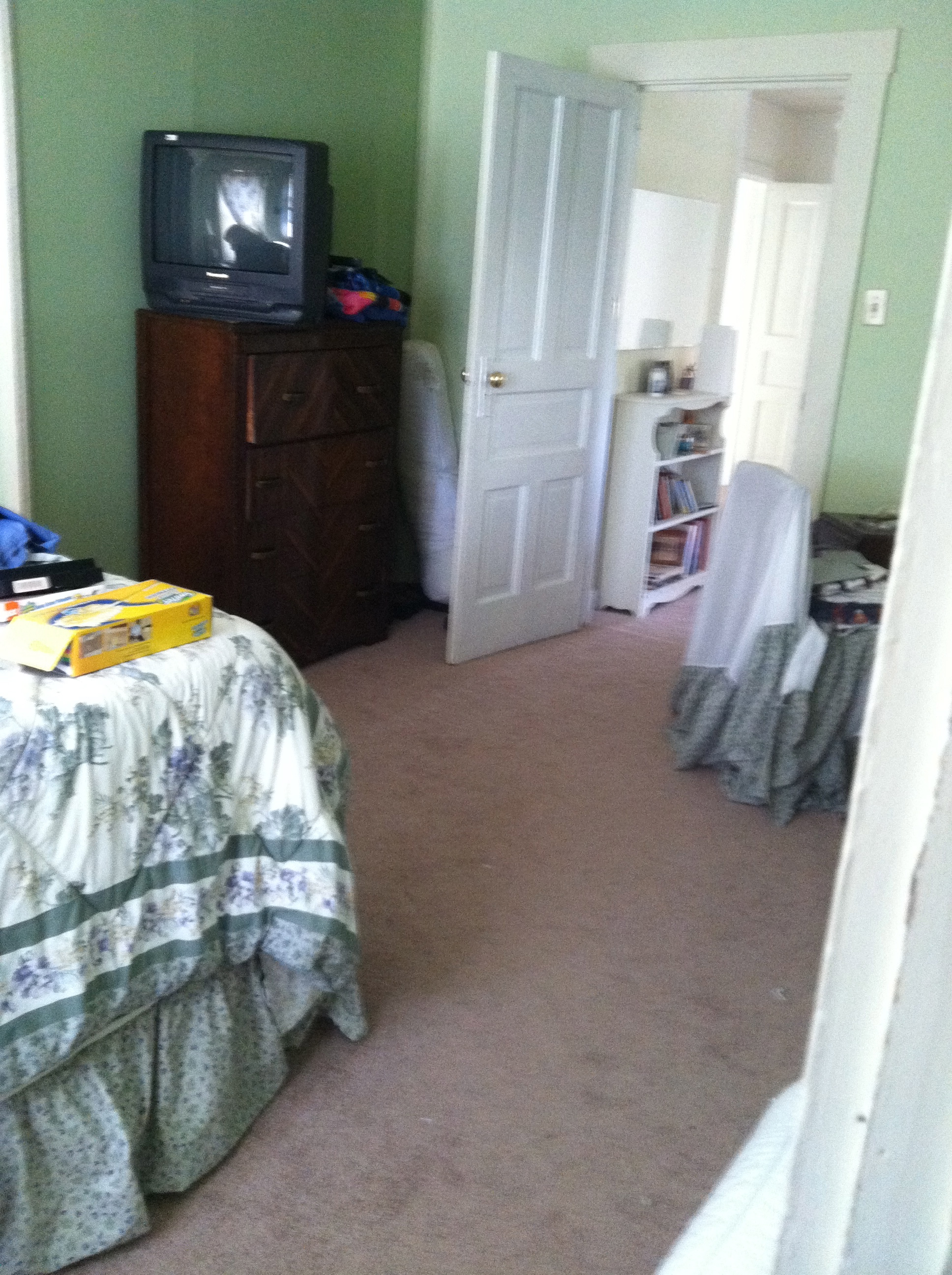 The next challenge: getting him OUT of the attic, through the closet, down the stairs and outside.