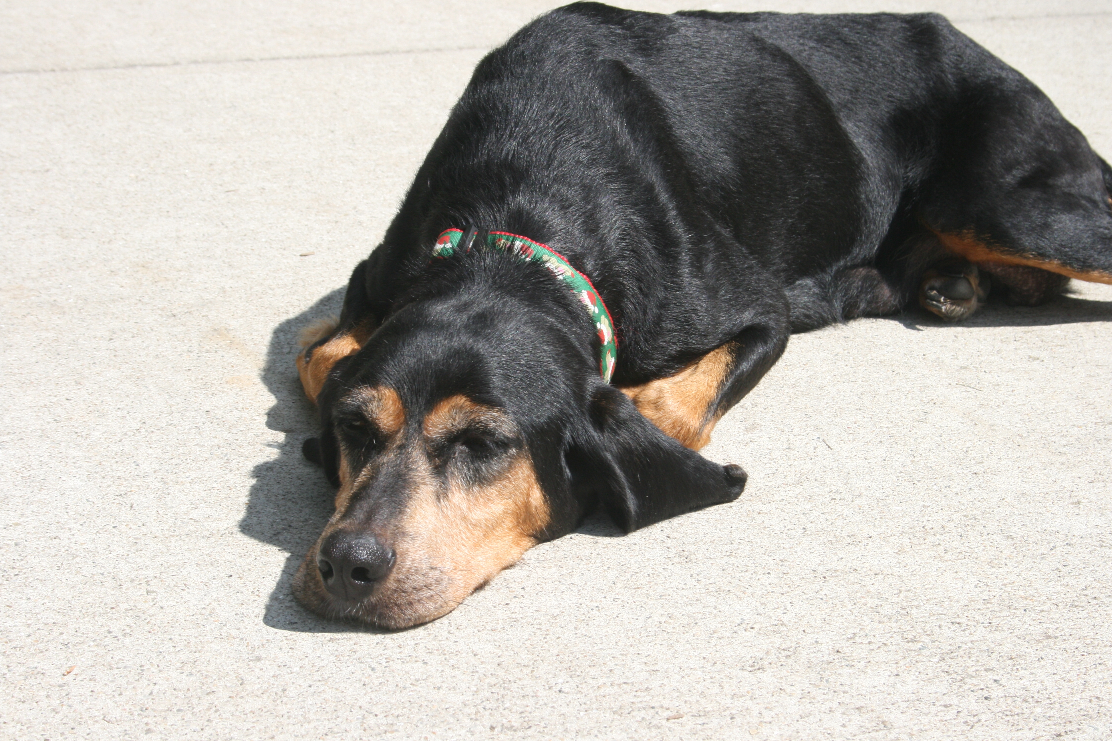 I found Wesson sleeping comfortably wrapped in his blankie – awww. He heard me walk towards him and his eyes slowly opened, his tail started wagging, and then he was standing! YAY!!