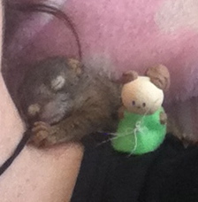 This is Murrel the Squirrel, (sleeping with the real Sophia on my neck)